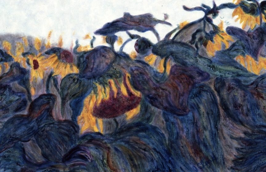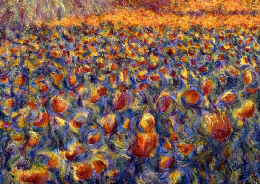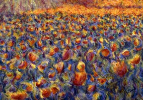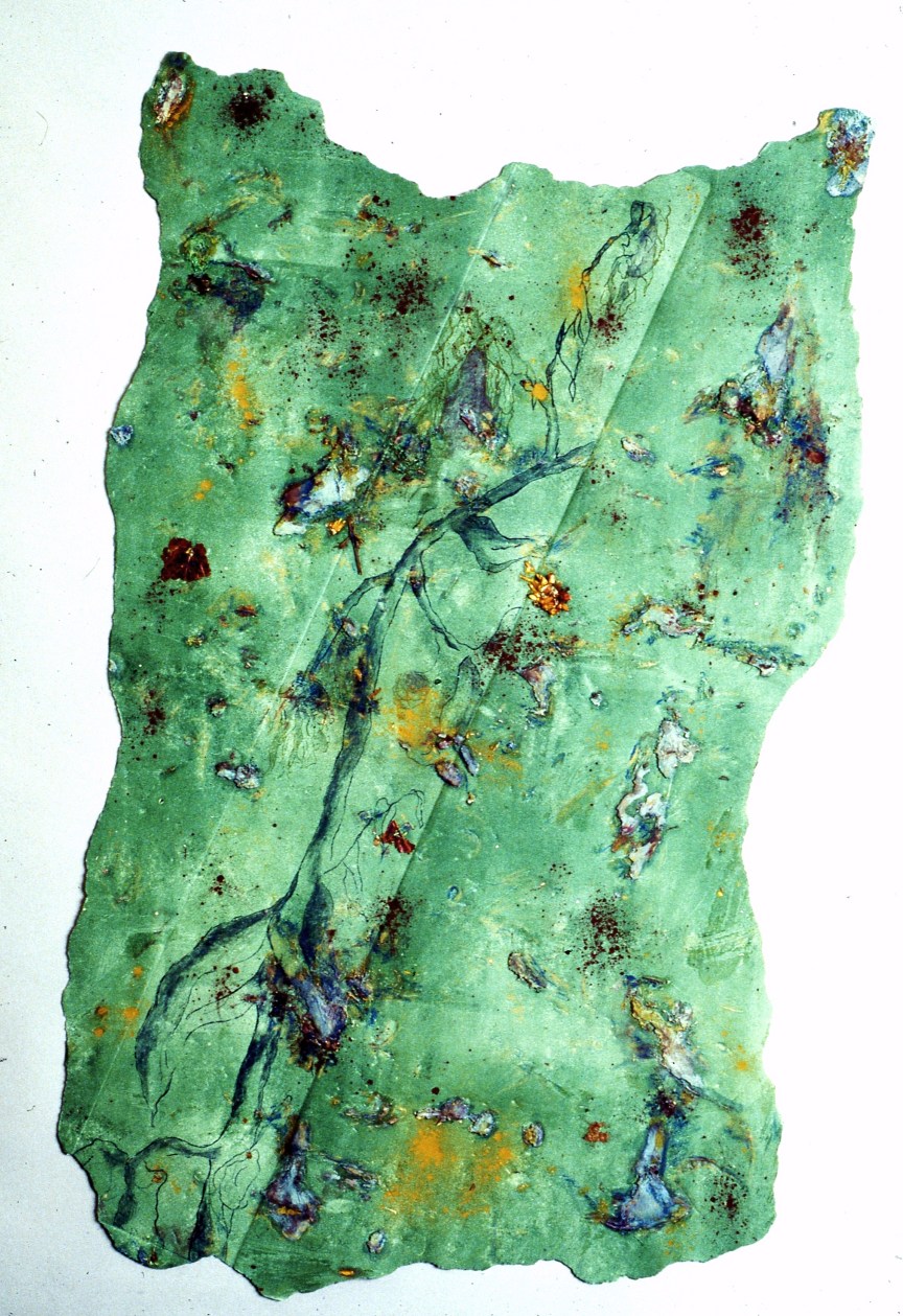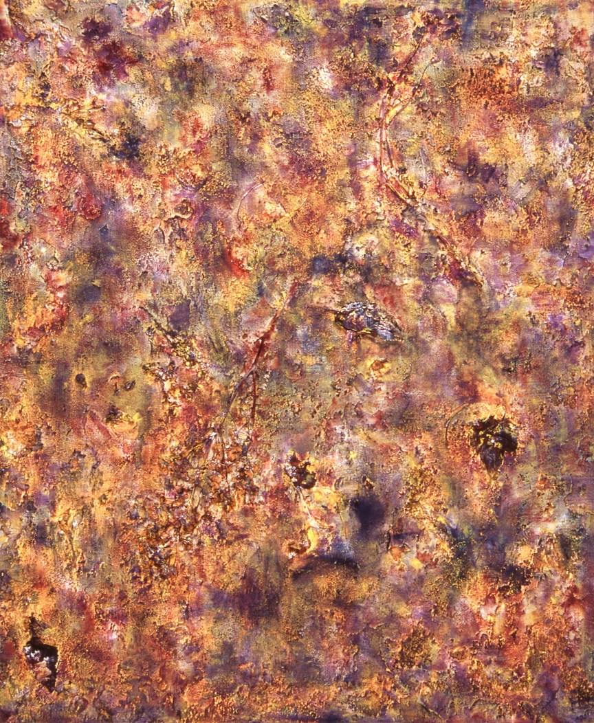 Oil on canvas wirh mixed media and botanical particles, 40 x 44"